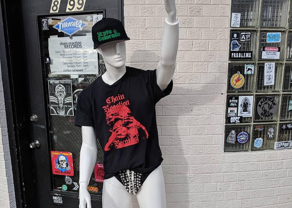 Chain Reaction Records is Colorado's destination for all things punk, hardcore, metal, etc. New and used LPs, CDs, cassettes, shirts, books, posters, jewelry, incense, and more. All the shit you can’t find anywhere else and some you can.
